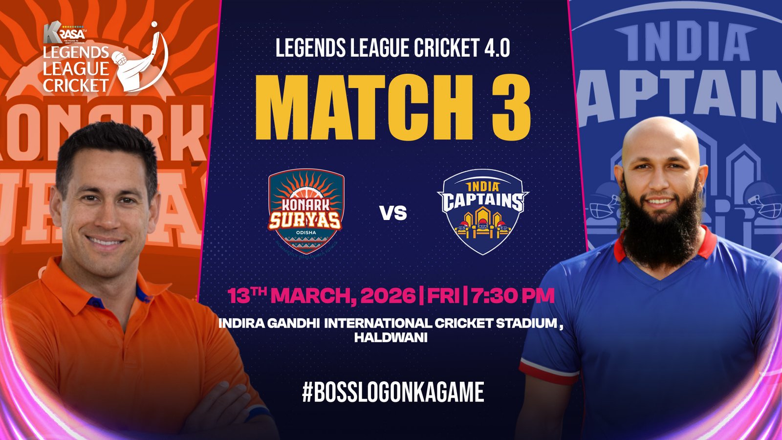 Match 3: Konark Suryas Odisha vs India Captains - Legends League Cricket 4.0